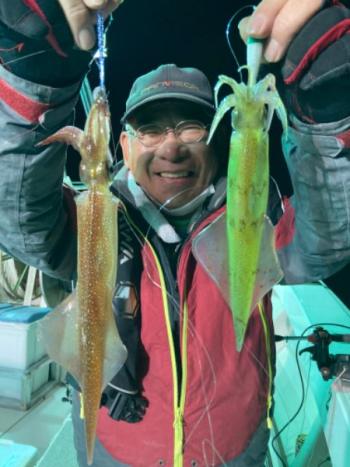 Action's 2022/03/31 UP 30日ヤリイカ半夜便 中藤氏ら 今日の半夜便もなかなかテクニカルでしたが、我慢して〜我慢して〜後半にようやくアタリを拾っていけました(^◇^;)‼︎ シーズン終盤なのでヤリイカも残りの生命力使ってやっと仕掛けに乗るってイメージですね〜( ̄▽ ̄;) 後半はイカの群れらしきベイト反応も結構通過していたのでまだ4月の前半もチャンスはあると思いますョ(゚∀゚)‼︎釣果ヤリイカ、マイカ15〜30センチ 2〜16はい 船中91はいギャラリー