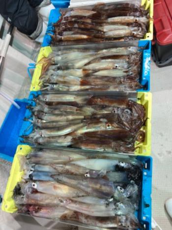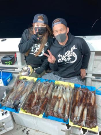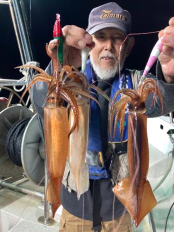 Action's 2022/05/12 UP 11日マイカ半夜便 岡田氏ら 今日の半夜便もマイカ&スルメイカでお土産バッチリでした😊‼️ 簡単に釣れそうで釣れない⁉️竿頭レベルの方でも悶々する状況ですが、これくらいが丁度面白いイカメタルなのです🤣👍 明日もチャレンジ精神でイカとの駆け引き楽しんでいきましょう〜😎🦑釣果マイカ&スルメイカ15〜36センチ 8〜32はい 船中350はいギャラリー
