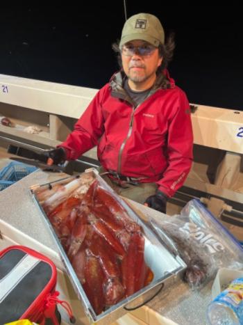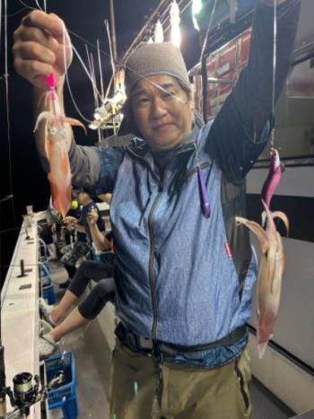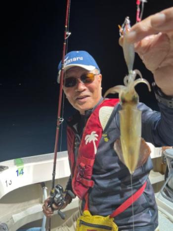 泰丸 2023/07/11 UP 10日マイカ深夜便 今日は久しぶりの深夜便にてマイカ狙いでした😁 春定丸の船長からバトンタッチしていただきましたが、活性があがらない時間帯なのか厳しめな状況でした💦😭 平均10杯とテクニカルな感じでしたが、トップ22杯はお見事でした👍😲 ギャラリー