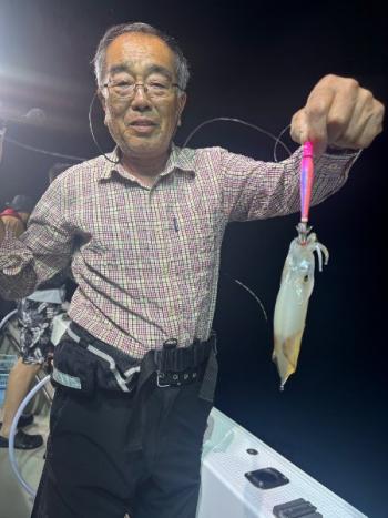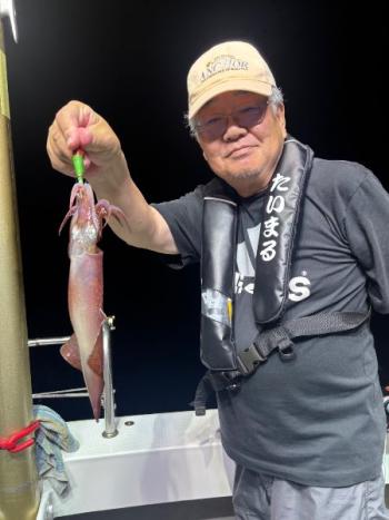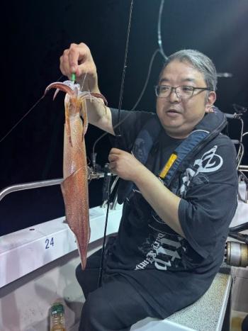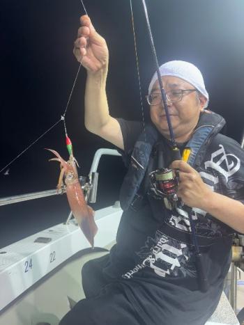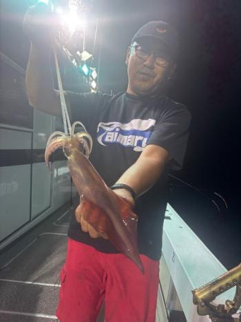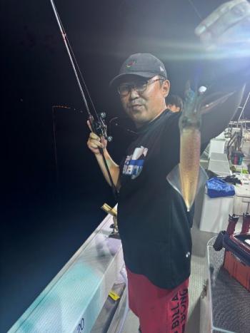 泰丸 2025/07/11 UP 10日イカ&イカダイ深夜便 まんまるお月さんのなか、今日は潮早く、パラシュートいれました😅 マイカは40メーターより上でポッツリポッツリ釣れました👍 小さいあたりや、違和感を捉えられた方はテクニカルな中コツコツと貯めていけましたね👌☺️ イカダイのほうは、エソ多く、本命のマダイは1匹のみでした😅 マイカは平均10前後でトップの方は19ハイでした😁ギャラリー