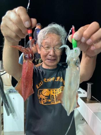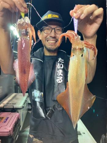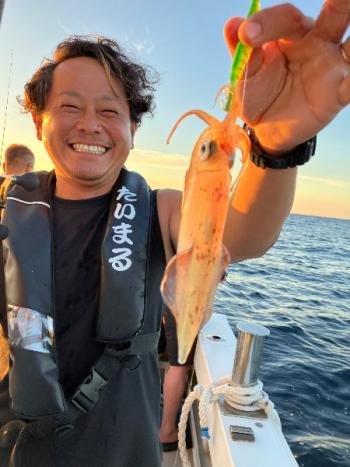 Action's 2025/07/26 UP 26月マイカ半夜便 今日の半夜便は毎年恒例の【ちょい悪烏賊親爺】御一行様のチャーター便でした😎🥸🤓‼️ 毎度お馴染みのメンバーさん達で和気藹々とイカメタルゲームを楽しんでいただきました🦑✨ トップの方で38はいGETが2名様🎉🎉 ボチボチ釣れた人もいれば悶絶していた人もいて…これぞ夏のイカメタルって感じでしたね🤣 今日もありがとうございました👍 また来年もよろしくお願いします😉ギャラリー