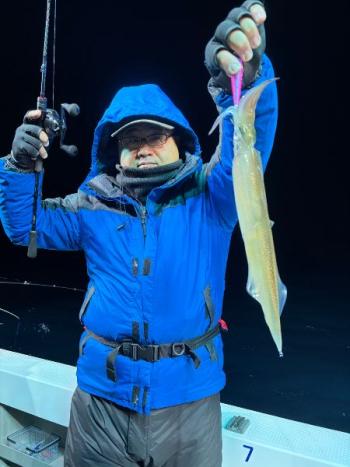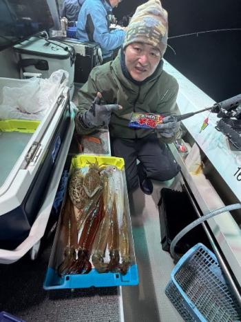 泰丸 2026/02/15 UP 14日ヤリイカ深夜便 出船前に半夜便の状況を聞くと、厳しいとのことでした💦😢 深場でじっくりとワンポイントで勝負してみましたが、前半ポツリポツリ連鎖もありました👍 しかし後半からはビタ止まりでさっぱりでした💦😓 トップの方11杯が2名さまでした🙇 厳しい中最後までありがとうございました🙇 海全体模様の悪い日だったようです。また良い日もあるので、懲りずにリベンジお願い致します🤲 ギャラリー