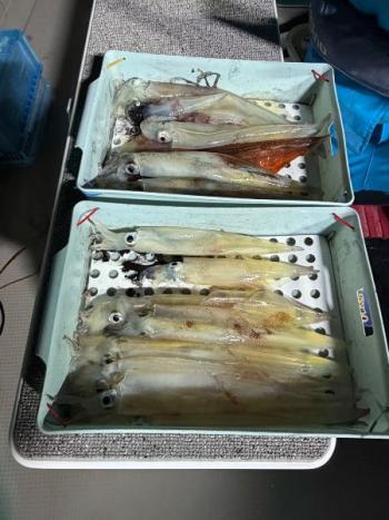 泰丸 NEW 2026/03/16 UP 15日ヤリイカ深夜便 ワンポイントで最後まで粘ってなんとか釣る人でトップ17杯でした🤲 青プラズノがよく当たってました! イカ玉の反応だしてたので、いるのはいそうなのであとはイカのやる気スイッチ次第ですかね😅 またひと盛り上がりして欲しいところです!ギャラリー