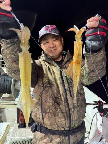 Action's 2026/04/12 UP 12日ヤリイカ半夜便 今日のヤリイカ半夜便も爆釣叶わず…大変厳しい状況でした😭 魚探に反応も殆ど入らずイカの群れは一体何処に行ったのやら…🦑❓ なんとか胴付きとオモリグ餌巻きで貴重な当たりを拾うことが出来て良かったです💦 トップの方で8はい👏ボウズちらほら🫣厳しい状況ですいませんでした🙇 明日も凪予報です✨人数揃い次第出船しますのでよろしくお願いします‼️ギャラリー