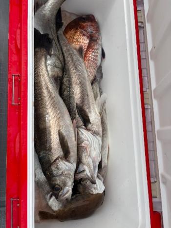 Second NEW 2026/04/29 UP 29日タイラバ午前便 今日も開始早々からヒット!連鎖!! ジアイでポツポツとヒットして、マダイ&シーバスで賑やかな大漁満足となりました⤴️😇 トップの方でマダイ6枚にシーバス多数でした👍 明日のタイラバ便もチャンスですよ! 空きありますので、エントリーお待ちしてます♪ギャラリー